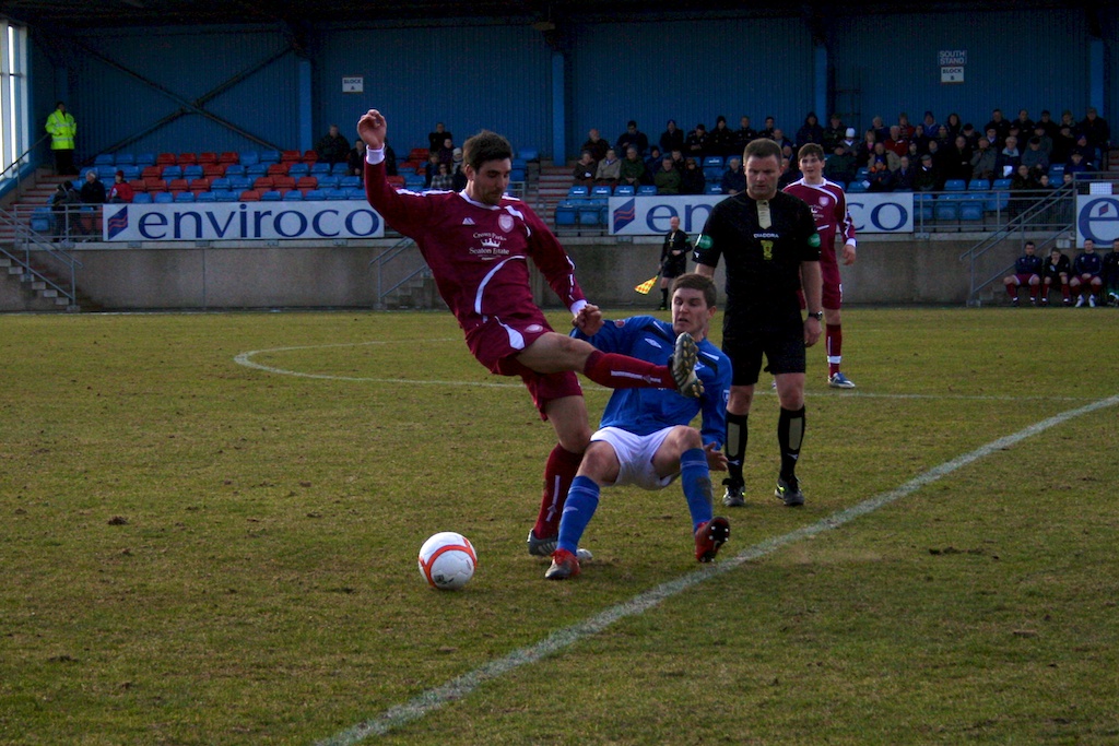 Prior to the kick-off we were treated to the wonderfully bizarre sight of the home team’s mascot – a seagull who was continually tripping up over itself and clearly couldn’t see out of the costume (hence being led round by a young girl) – if it had been on Rolf Harris' Animal Hospital it would’ve been given the last rights. The match itself began at a reasonable pace with both sides creating an opportunity – Arbroath's Stevie Hislop hitting the side netting when he may have done better and then the home side’s Paul Emslie unleashing a fine drive which keeper Darren Hill tipped away. It was Peterhead who took the lead in the 13th minute when Peter Bruce headed home a Daniel Moore cross and Arbroath struggled thereafter to gain any sort of foothold in the first half. Indeed Peterhead could've doubled their advantage before the break but Paul Emslie’s shot hit the post.