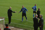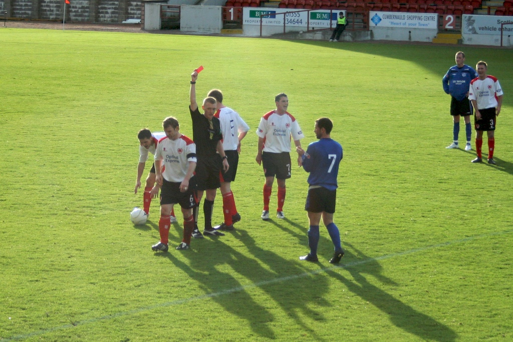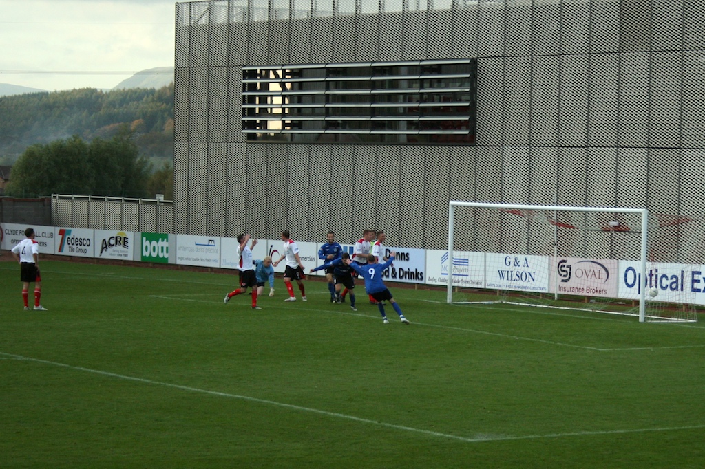The first ten minutes were hectic, both sides emerging with an attacking impetus and it was Peterhead who struck first after just 6 minutes when David Ross swept home after shoddy defending from the home side. However after the opening drama the game quickly became bogged down in midfield and each side struggled to create genuine openings. As the first half meandered to its conclusion we were debating the quality on show when Clyde captain Marvyn Wilson decided to go all Calzaghe after a midfield tangle. His quick left-right jabs to the chin and stomach of John Stewart rightly saw him take an early bath and leaving Clyde with a massive uphill task for the 2nd period.