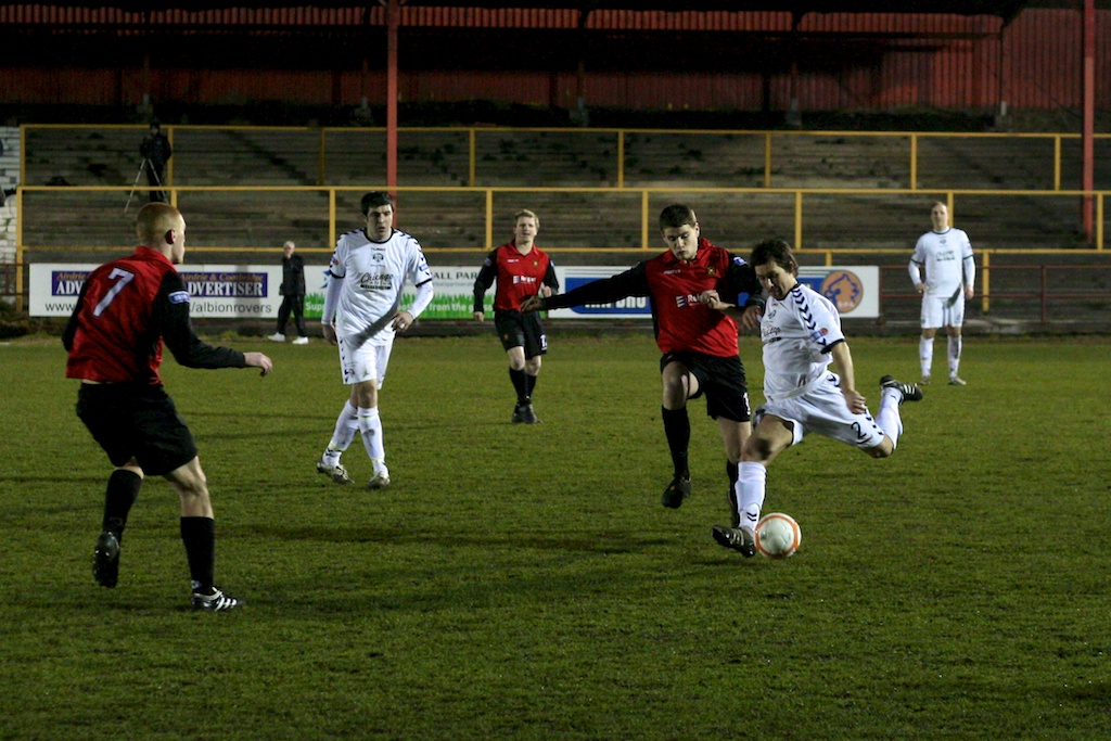 After some early sparring from either side Rovers keeper Jamie Ewings produced the first meaningful save of the evening with a parry from Simon Lynch. The goalie was to go on to have a massive say in the night’s proceedings, his next moment coming just ten minutes later with a wonderful diving save from the brilliantly named Michael Bolochoweckyj. Then, 5 minutes from half time, the away side’s David Dunn cracked a shot off the post which rolled along the line and somehow safely back into Ewings’ grateful arms.