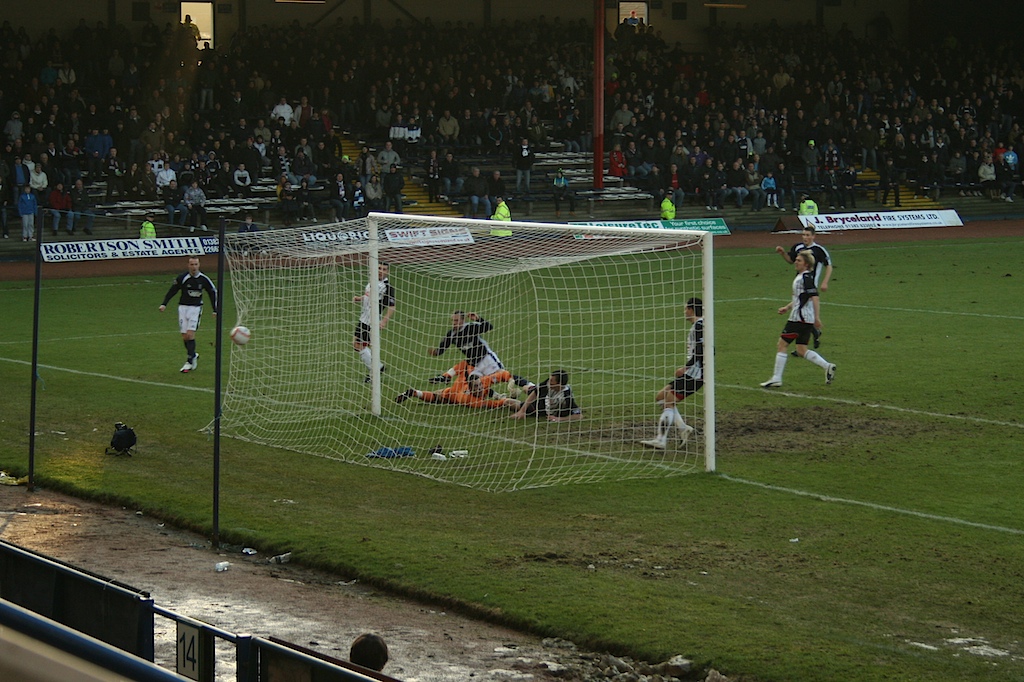 The second half was a completely different prospect with Dunfermline coming out fired up, they bombarded the home side’s goal from the off and within just four minutes of the restart Andy Kirk had them level with an easy a chance as he will ever get after a great header back across goal by David Graham. The home support was becoming increasingly frustrated as Dunfermline continued their assault, peppering the Dundee box with shots and crosses although the final ball did often let them down. Despite the excellent pace and high energy levels there were signs that this may not be the Pars day as it seemed every ricochet and bounce fell to a Dundee player and sure enough with just eight minutes left Griffith struck again, this time a rebound effort after his initial shot was parried by Fleming in goals.