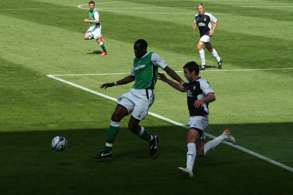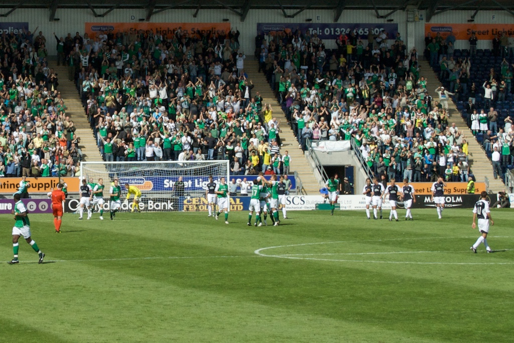 The buoyant Falkirk support quietened as Hibs regained the control of the game and Riordan's excellent goal to make it 3-1 five minutes from time was our cue to make a sharp exit and a mad dash to our 3pm game - next stop Dunfermline.
