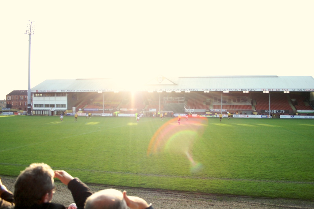 Our 16th trip was the second shortest journey of the season (our Groundhoppers boffins working in their labs found that the club soon to be known as Lloyds F.C is 0.03 miles less). It was off to the west end of Glasgow on a gorgeous autumnal afternoon for a first division battle between Partick Thistle and Raith Rovers with both sides amongst a cluster of teams competing at the top of the table. It was also our second chance to witness the wonder that is Gregory Tade and boy were we surprised. But more on him later.