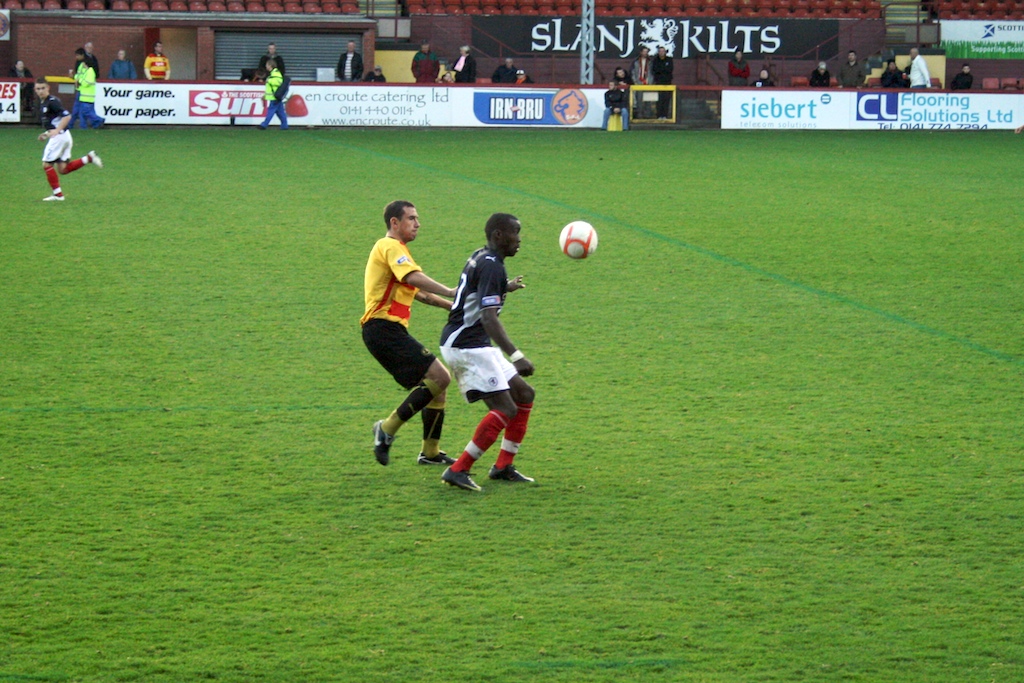 After the Halloween themed half time festivities Thistle came out with a more attacking intent although chances were few and far between. Donnelly looked to be teeing up a shot in the box when he was well blocked by the Raith defence. Just 5 minutes later Rovers broke away with Tade's shot blocked well by keeper Tuffey but Thistle could not scramble the ball away and Robert Sloan stabbed it home. Thistle pressed hard in the final 20 minutes with substitute Chris Erskine impressing most but in truth they were somewhat toothless up front. In the end Raith saw the game out for a probably deserved 3 points.