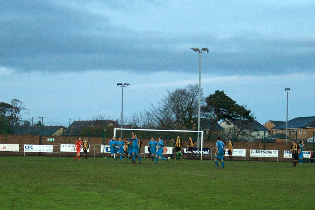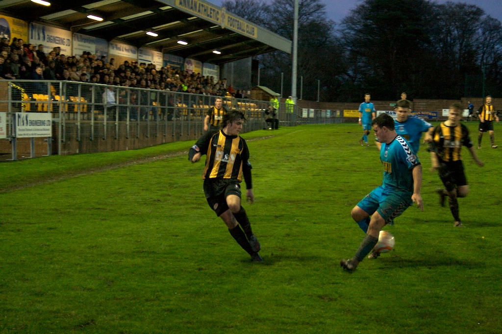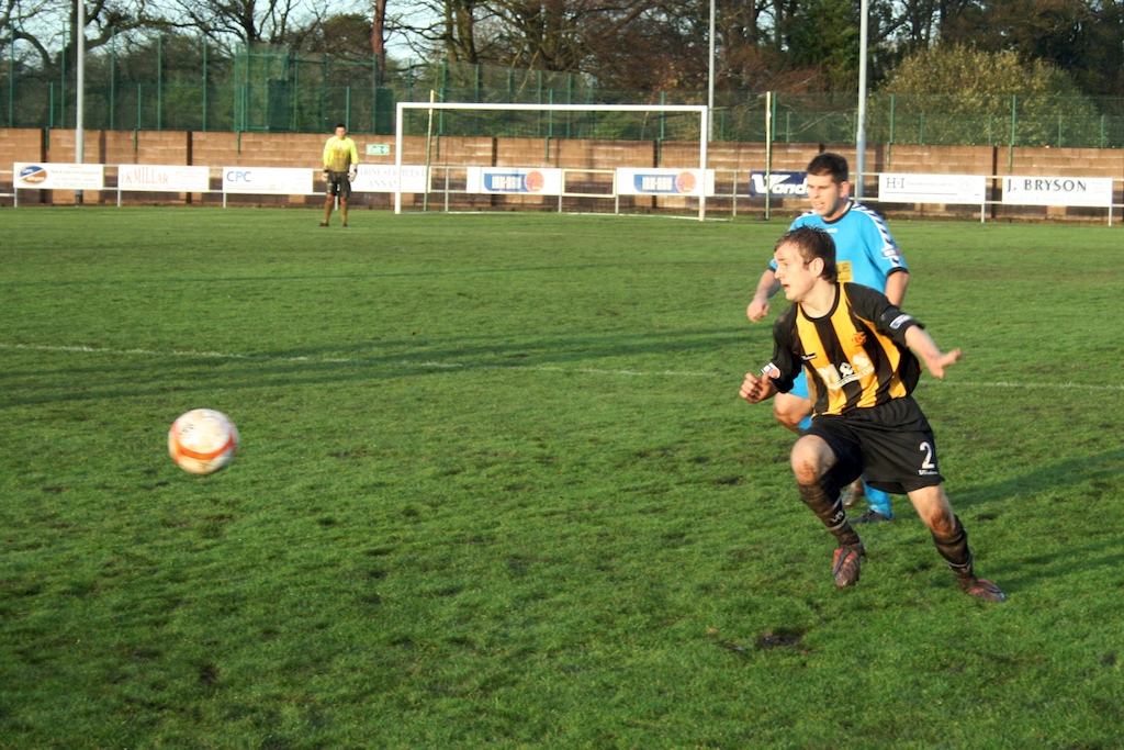 Unfortunately there was a delay in the pie man bringing in his delivery so our pre match ritual was temporarily on hold but the van did finally pull up at five to three to a gaggle of excited children. We quickly realised that each side would face an uphill struggle at some point in the match given the astonishing slope on the park, the home side were first to face the mountainous challenge. The teams emerged to the thunderous sound of the A Team theme and a crowd of 400 or so punters. Given the sodden conditions on the pitch the opening stages of the game was an interesting spectacle ' both sides showing good commitment with whole hearted challenges and Annan creating 2 or 3 decent openings but failing to break the deadlock.