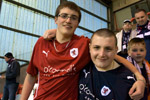 Having survived the drive through an apocalyptic town called Calderbank we arrived at the eccentrically named Excelsior Stadium just in time for kick-off. Airdrie United emanated in 2002 from the ashes of bankrupt clubs Airdrieonians and Clydebank and have endured a topsy-turvy early period with promotion, relegation and unlikely league survivals. The stadium was built for Airdrieonians in 1998, a 10,000 seater consisting of four one tier stands in a pre-fab style similar to St Mirren. We opted to sit amongst the Fifers in a taped off section of the main stand, the only one that was open which gave it a somewhat eerie atmosphere.
