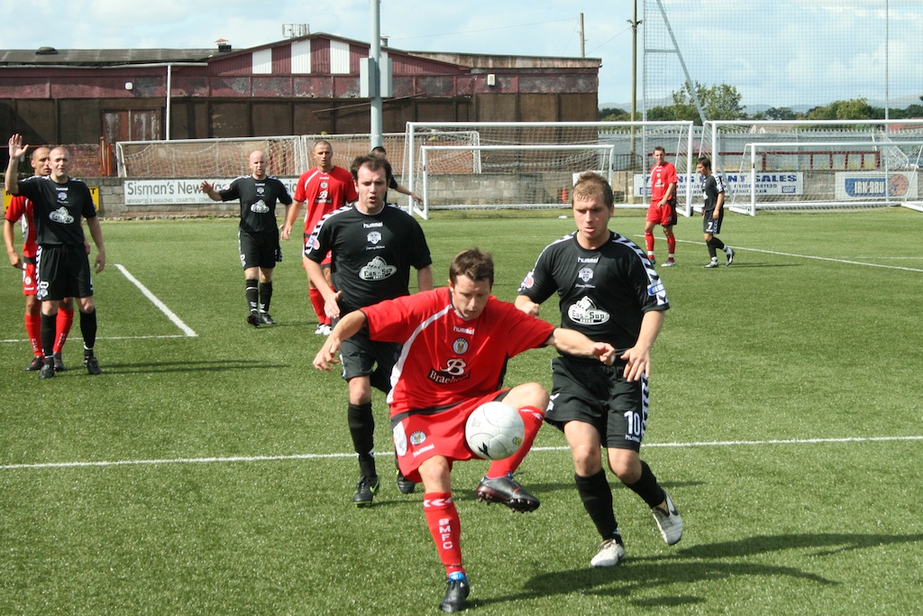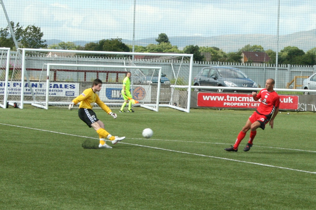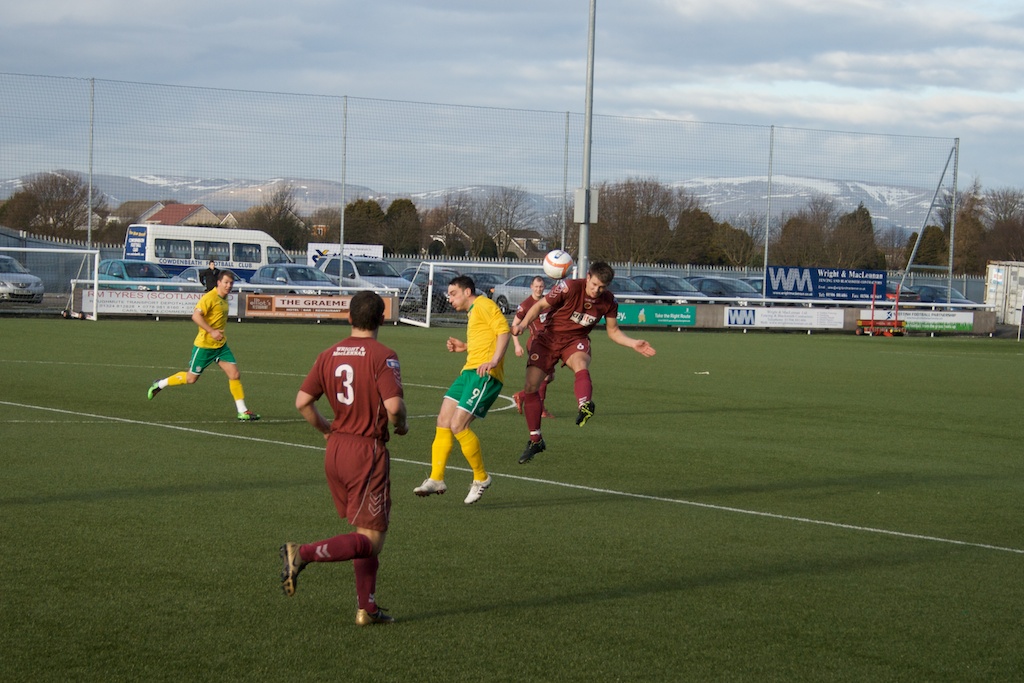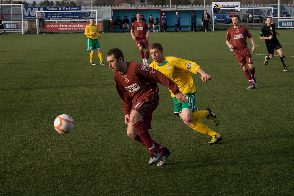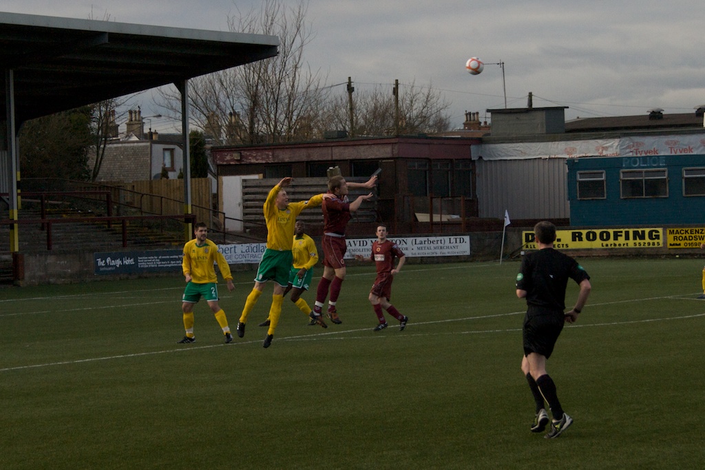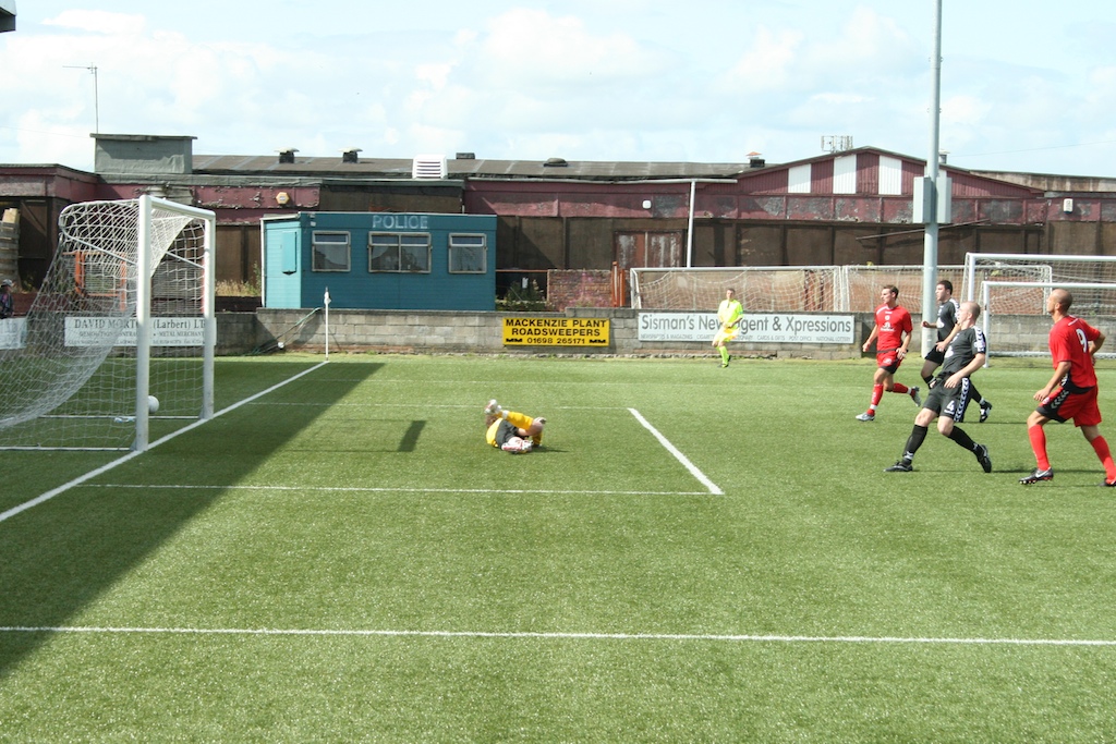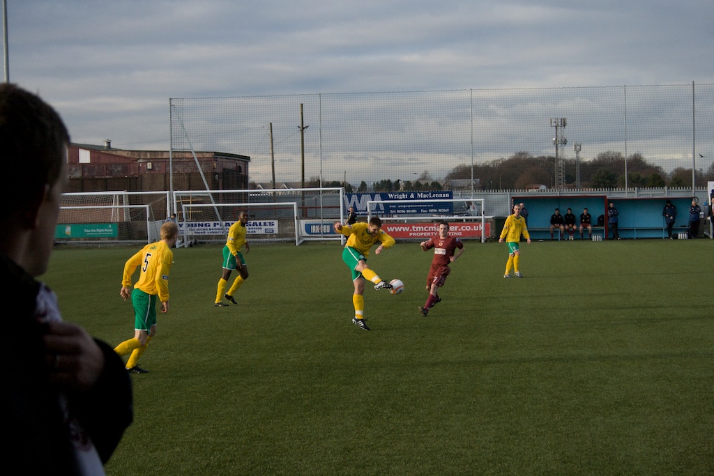 The match began at a good pace with Stenhousemuir pressing the away side hard but failing to create any real clear cut opportunities. Cowdenbeath did look more dangerous in attack but their forays forward were rare in occurrence, striker Gareth Wardlaw coming closest. The game turned in the Blue Brazil’s favour when Stenhousemuir’s Pat Scullion received a second booking just after the restart for reasons only known to the referee and linesman – presumably for abusive language (something with which the 400 or so punters berated the officials with for the remainder of the game). Cowdenbeath briefly threatened to utilise their numerical advantage and Stenny keeper Chris McLuskey pulled off a stunning save from a close-range Paul McQuade effort. Despite dominating possession they failed to create any further clear cut chances as the home side doggedly sat in and tried to hit on the break. Indeed they could've snatched an unlikely three points but their final ball let them down and when they did get a clear sight of goal they failed to properly test goalkeeper David Hay. With just seconds left on the clock Stenhousemuir's Paul Quinn found space and raced towards goal only to be cruelly chopped down by Kenneth Adamson. He deservedly saw red but the resultant free-kick sailed high and wide and that turned out to be the final action.