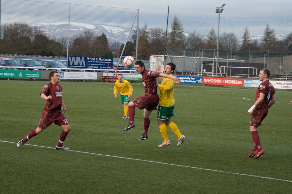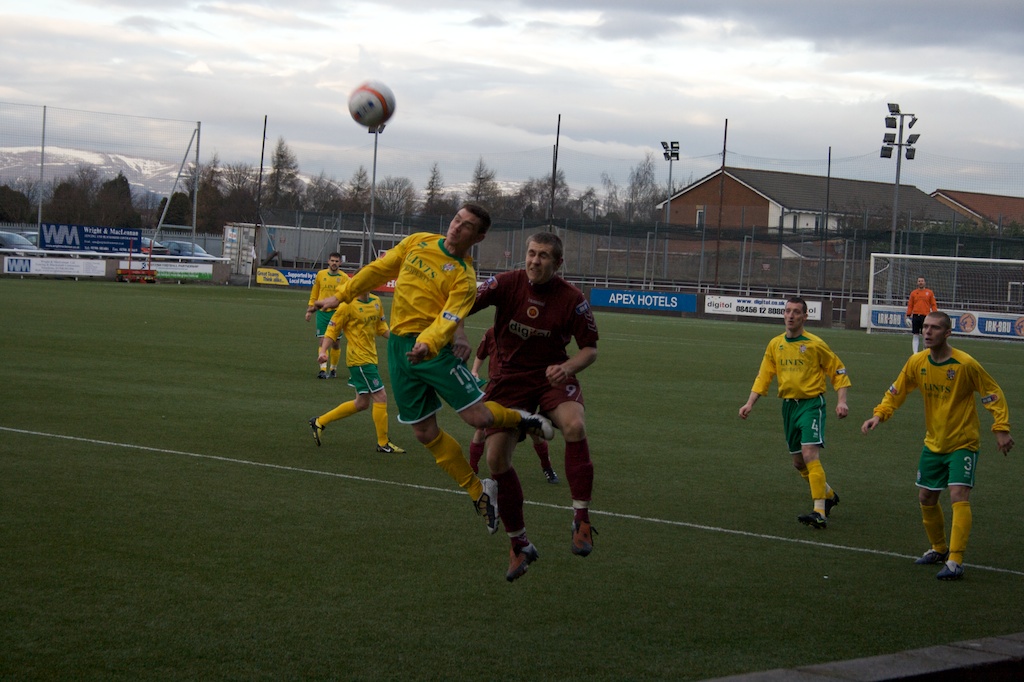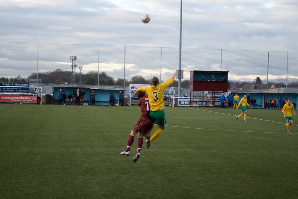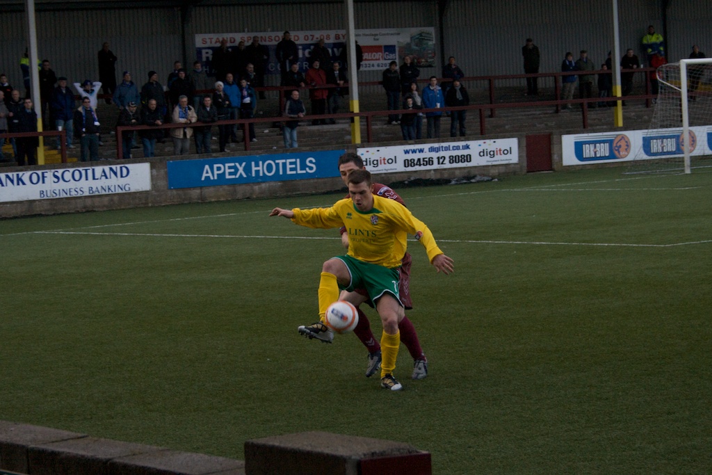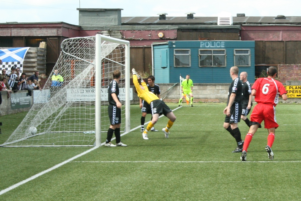 The day didn’t start too well for myself, as we trudged along the roadworks labyrinth that is the M80 we listened to Celtic blow a two goal lead and further dent their hopes of a league title. However with the sun out I quickly forgot about our defensive deficiencies and looked forward to game number 31 - although expecting another nine goal thriller in front of a packed house may have been asking for too much. The pre-match pie and Bovril was tastier than we remembered although Kieran perhaps correctly pointed out that our standards may have lowered somewhat after 6 months of the varying cuisine quality we have endured. Despite Sean having long since quit the Groundhopping mission he was there in spirit in the form of Cowdenbeath defender John Armstrong who struck a remarkable resemblance. However the similarity ended there as Armstrong turned out to be quite a competent footballer.