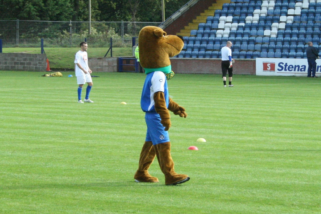 Stair Park is an odd mix of a shed, a hedge, benches and a tiny main stand accompanied by the most disturbing mascot we're likely to see all season - some sort of Scooby Doo character who's survived a nuclear fallout. The game itself was dominated completely by Livingston who stormed into a 3-0 lead after half an hour and never looked back. Stranraer were a complete shambles - no organisation at the back, no ability to retain possession of the ball and horribly short up front.
