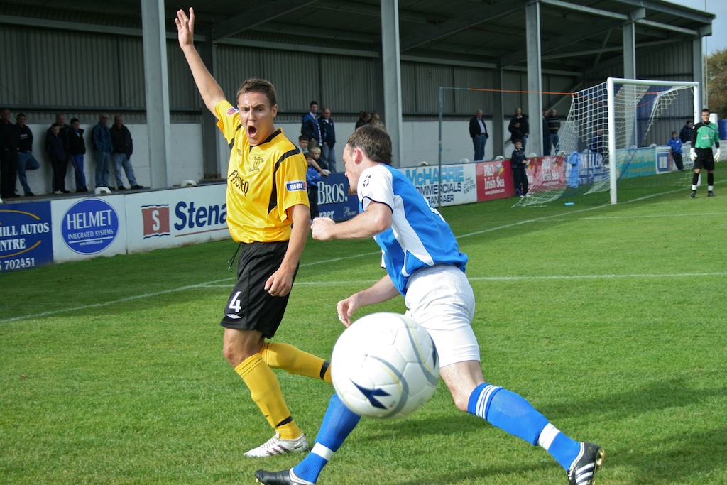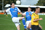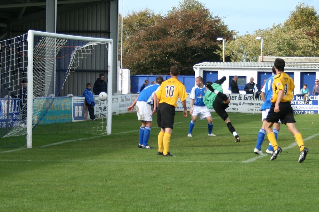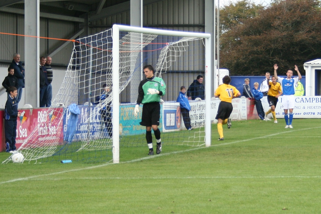 The second half saw little change with only the heroics of Stranraer keeper David Mitchell keeping the score respectable if nothing else. The strangest part of the day however occurred off the park after half time. Kieran's Oxford top had been the source of some confusion throughout being that it is the same colour as Livi's. In the first half a steward had suggested we move from the home end to be with the Livi supporters so we had to point out we didn't support the away side. In the second half we had moved round to behind the other goals when the same steward approached us again, this time asking us to leave the away end and re-join the Stranraer fans. A quick look round revealed the away end consisted of two fathers with their young boys so naturally we were baffled as to why we had to move. He persisted with his 'you can't stand here' line but we weren't for moving. He ended up walking 20 yards away and eyed us suspiciously for the remainder of the game. I'm not sure whether we're beginning to earn some sort of reputation at the grounds we visit.