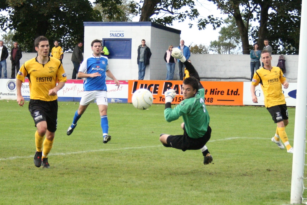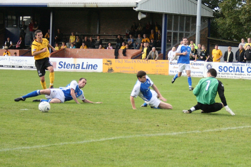 Stranraer had been through a topsy-turvy time of late - for the eighth consecutive season they have played in a different division and their financial state remains precarious but it is nothing in comparison to their opponents Livingston. Just a few years ago the club was enjoying rich success in the Premier League, finishing 3rd behind the Old Firm, had an exciting adventure in Europe and won the League Cup. Since then however their very existence seemed doomed at one point as they stumbled from one financial disaster to another and they now find themselves demoted from division 1 to 3.